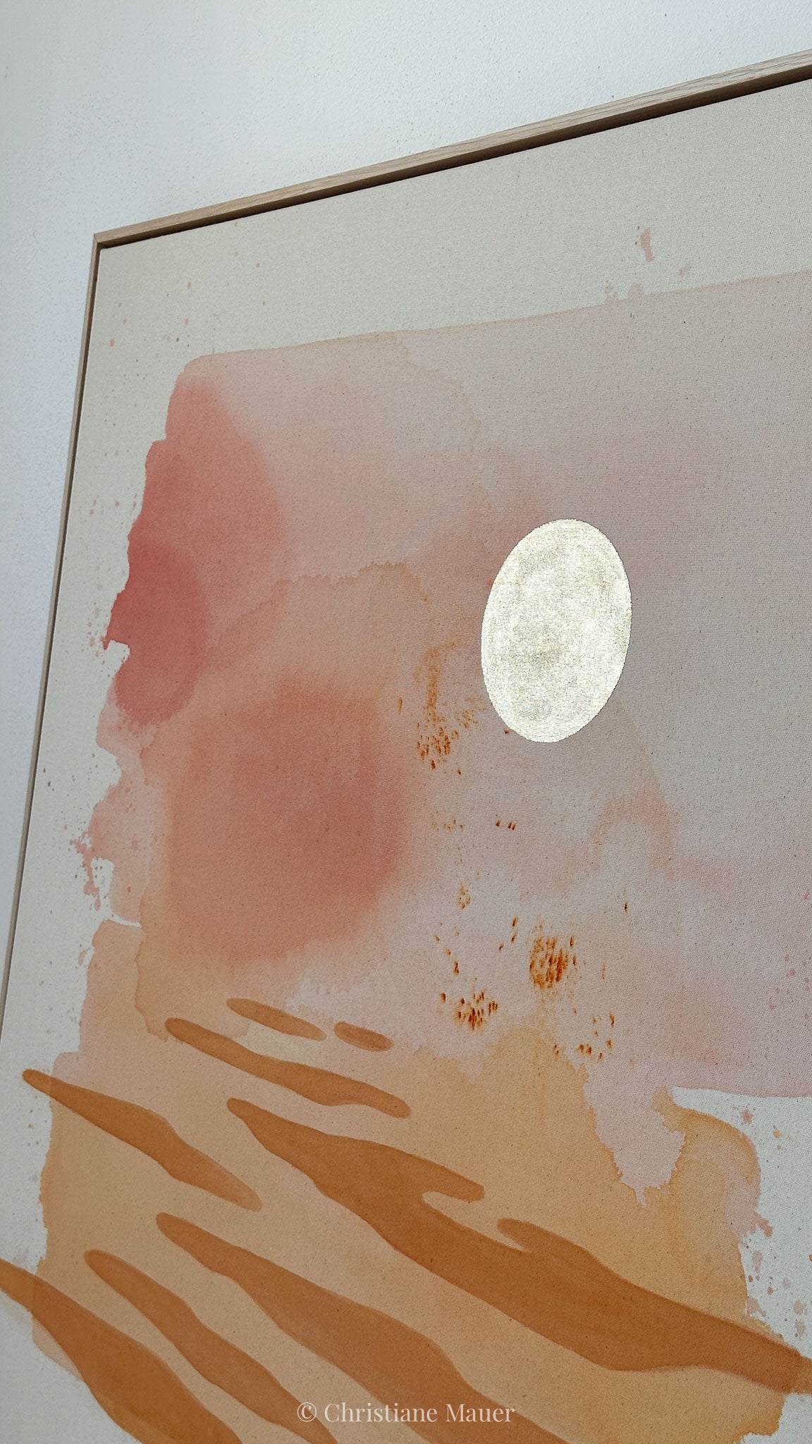 – framed in a natural wooden floater frame "natural oak", ready to hang